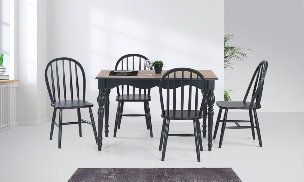Manila Meşe-Antrasit Masa Takımı (Amerikan Sandalyeli)